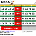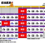 担当医表は現在上記のとおりです。(画像クリックで大きく表示されます) 赤字の医師は女性医師、青字の医師はスポット医師が診療を担当いたします。 変更がありしだい、改めてお知らせいたします。 ...
