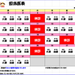 3月の担当医表は現在上記のとおりです。(画像クリックで大きく表示されます) 赤字の医師は女性医師、青字の医師はスポット医師が診療を担当いたします。 変更が出次第改めてお知らせいたします。 ...