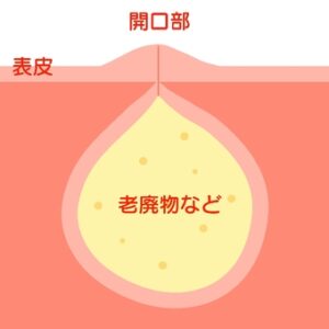 皮膚の表面にあるはずの細胞が内部に入り込み袋状の構造を作り、その中に角質や皮脂といった老廃物が溜まることで発生します。