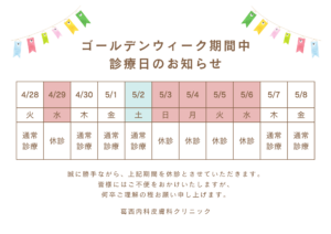 4月30日(木)・5月1日(金)・5月2日(土)は通常通り診療を行います。